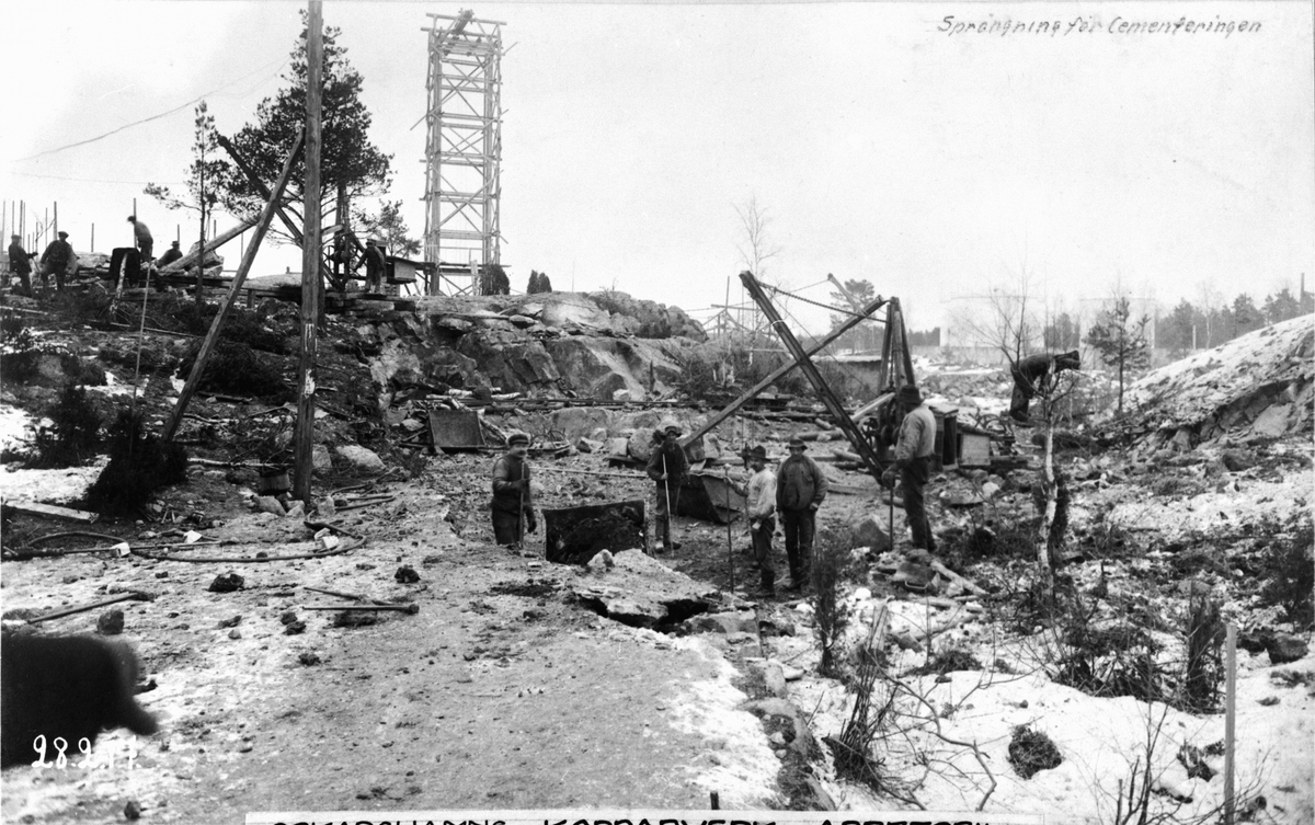 Byggherre: Bygnadaktiebolaget Contractor, Stockholm. Kopparverk. Arbetsbild. Sprängning för cementeringen.