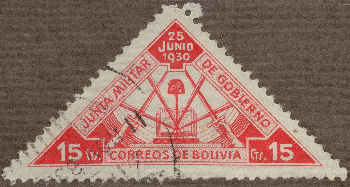 Frimärke från Bolivia, 1931. Motiv av Svärd och andra blanka vapen Minne av revolutionen 25.6.1930