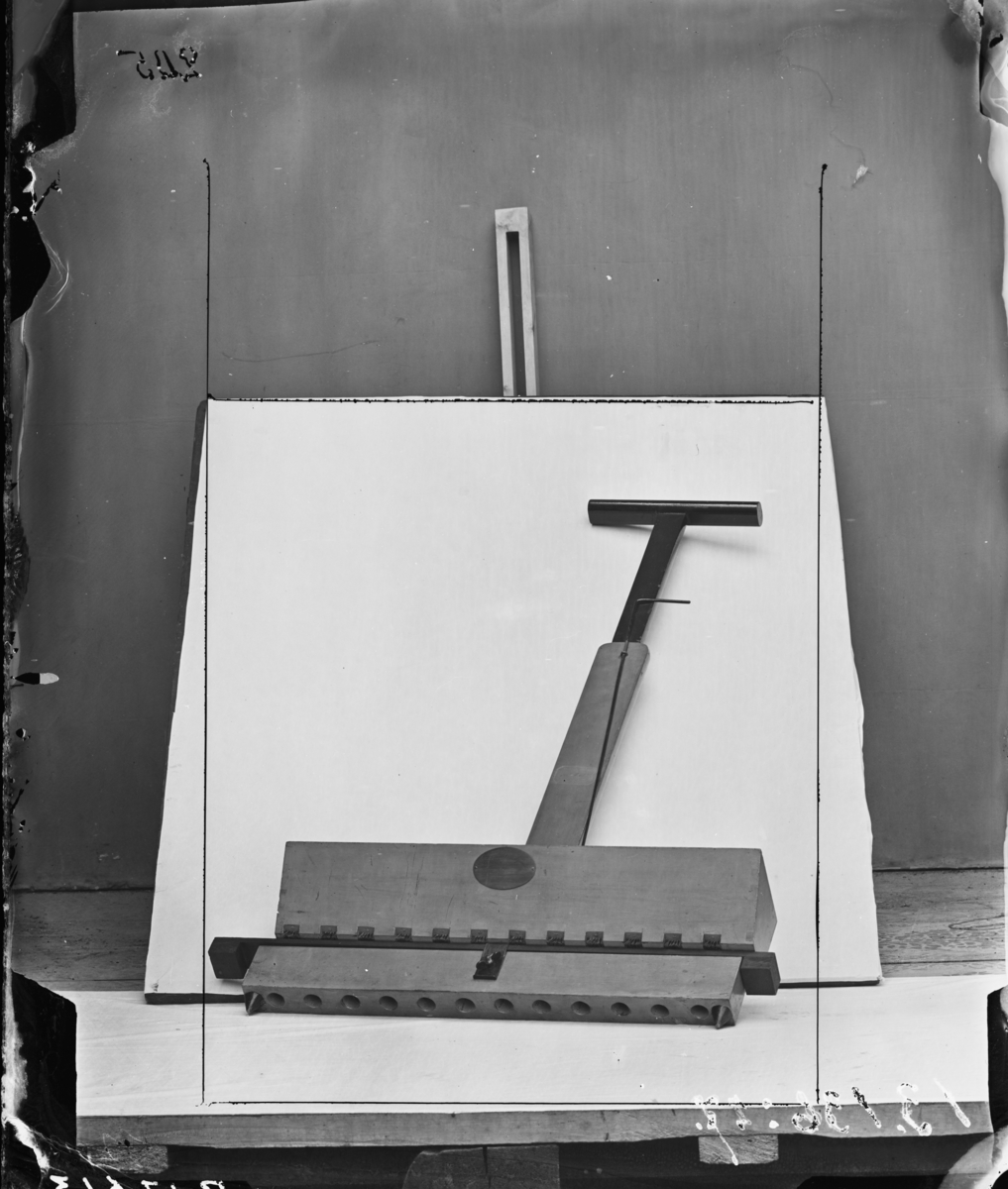 Ärtläggningsmaskin sedd framifrån och i lutande ställning. Inv. år 1862.