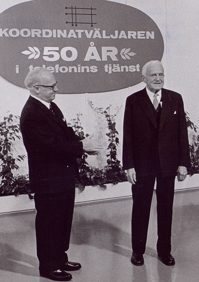 Vd Angerby hälsar ingenjör Palmgren välkommen till koordinatväljarjubileet i Nynäshamn d. 28 nov. 1969.