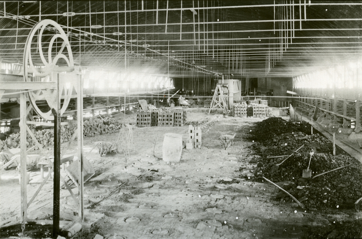 Limhamns Cementfabrik. Ovanpå gamla ringugnen. Den maskinella anordningen var för upp- och nedhissning av råstensvagnar.