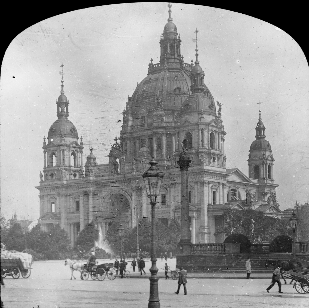 Skioptikonbild med motiv av domkyrkan i Berlin, Berliner Dom.