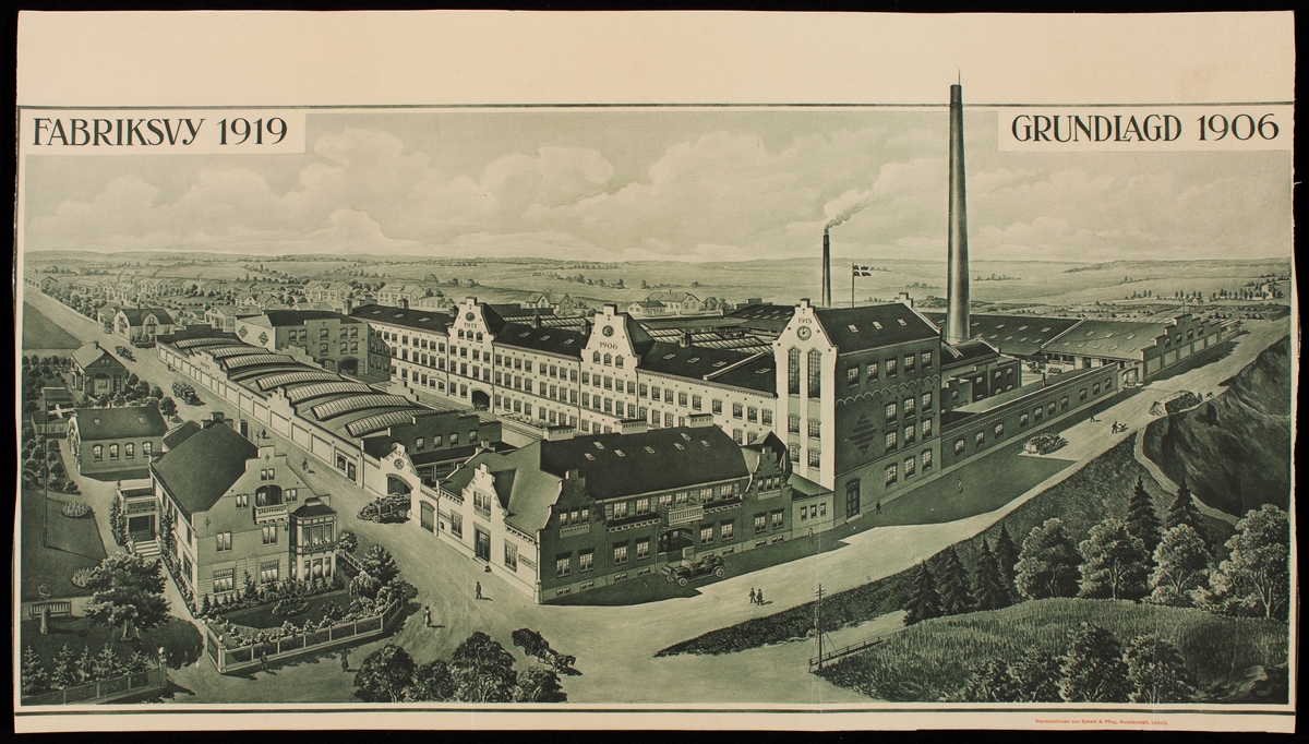 Plansch. Klippans Chromläderfabrik, Skåne. Repruduktion av von Eckert & Pflug, Kunstanstalt, Liepzig.