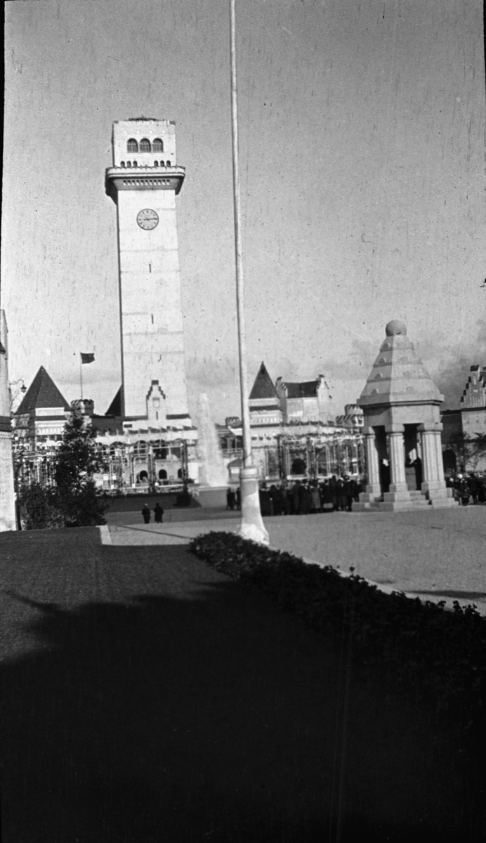 Skioptikonbild med motiv från Baltiska utställningen i Malmö 1914, konstindustri och hantverksutställning.