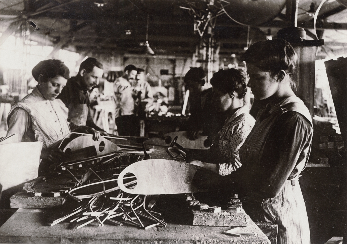 Tillverkning av spryglar till flygplansvinge, Fokker, 1918.
