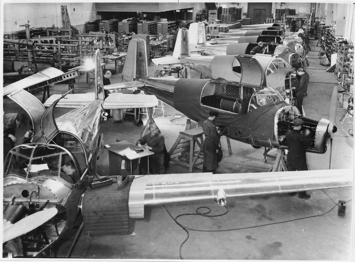 Bild från Svenska Aeroplan AB i Linköping. Serietillverkning av sport och reseflygplanet Saab Safir.