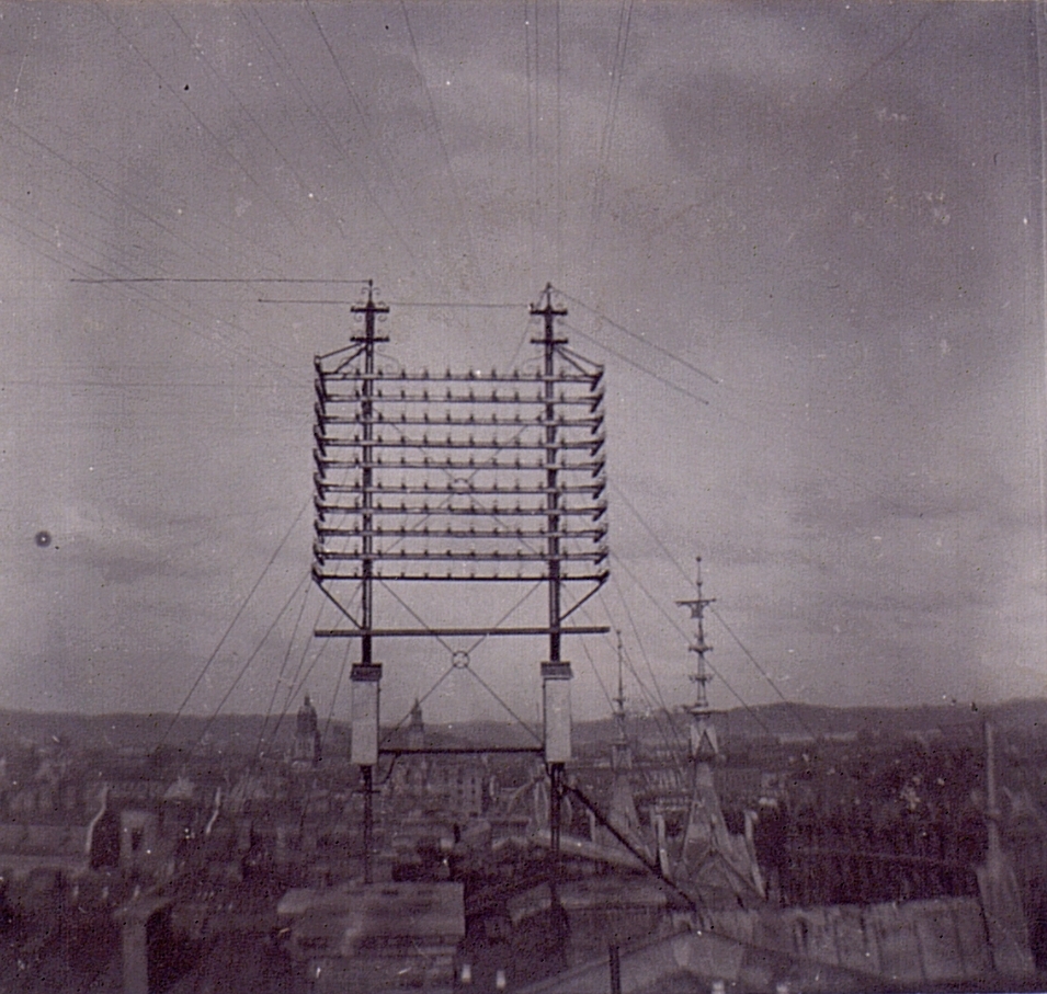 Malmö nät och stationer år 1890. Telefongalge monterad på tak.