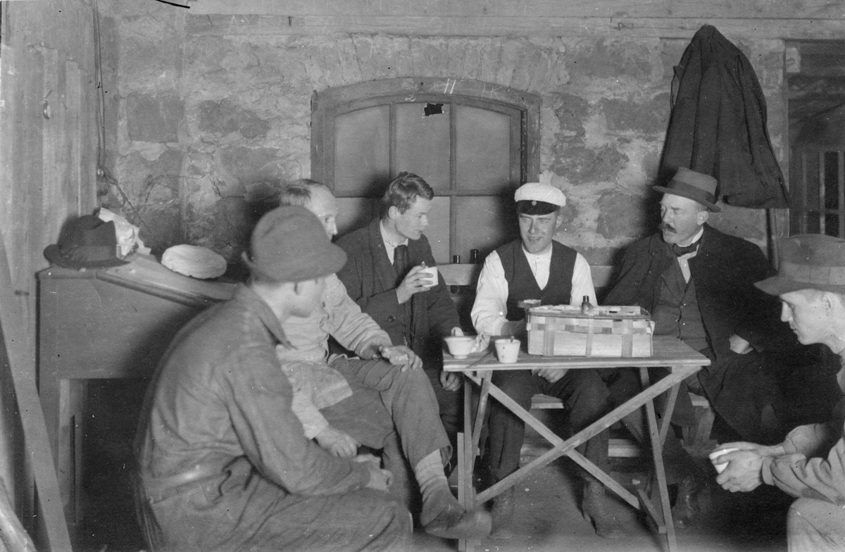 Hagfors bruk. Bergshögskolehyttans noddrivning natten mellan 21 och 22 maj 1920, Teknolog Skog, Professor Leffler, Teknolog Wässman, Hermelin, Eklund och Brundin.