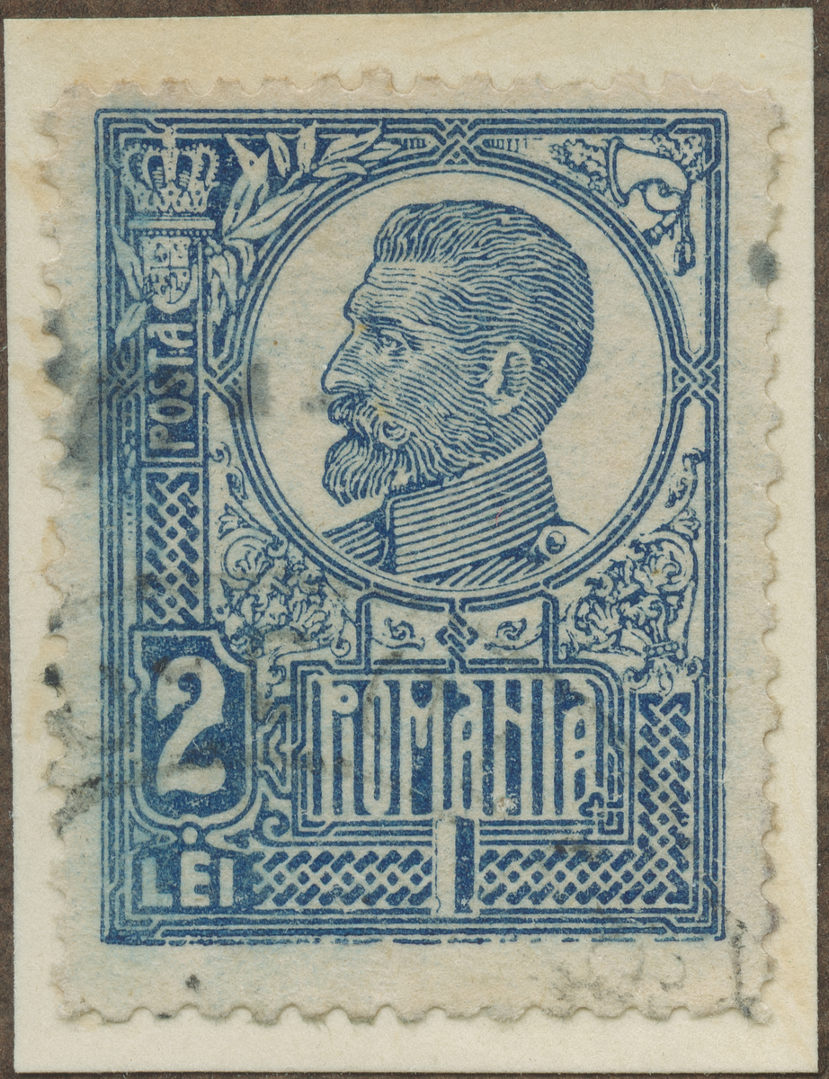 Frimärke frånRumänien, 1920. Motiv av Krona Kung Ferdinand I.