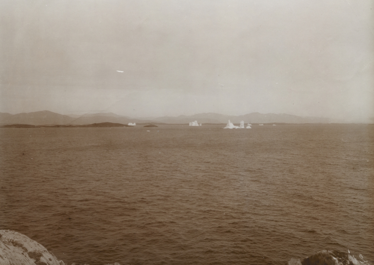 Fotografi från expedition till Grönland. Vy över hav med isberg.