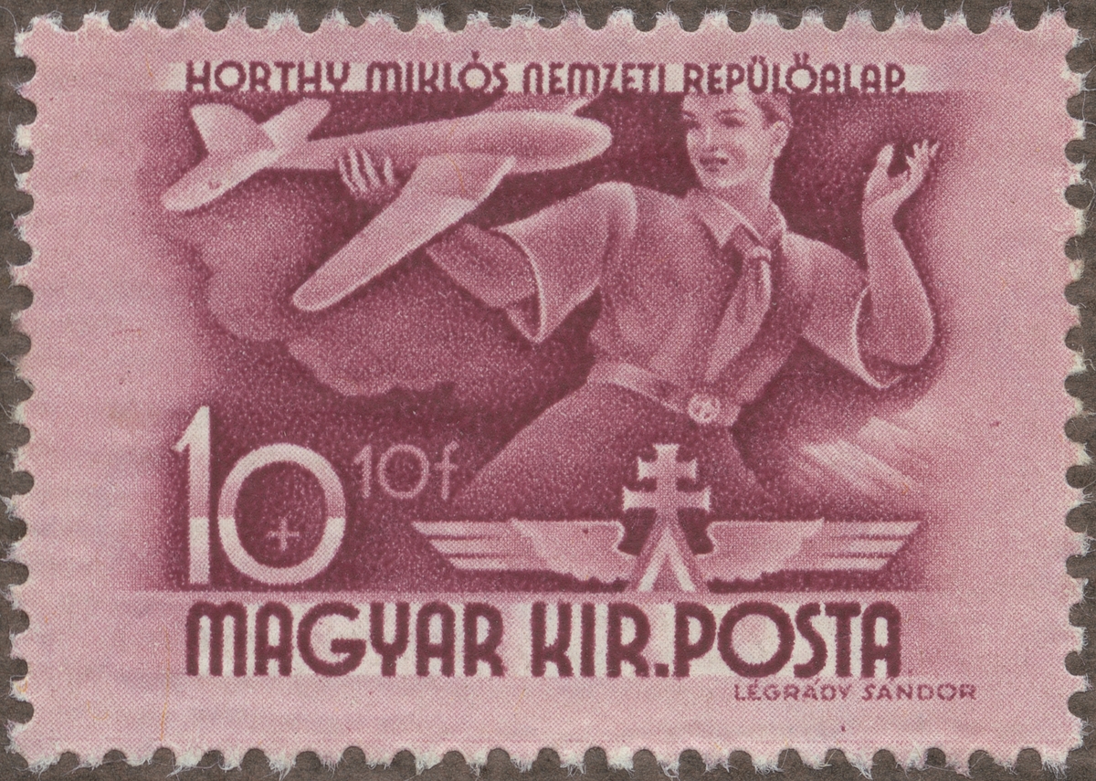 Frimärke från Ungern, 1941. Motiv av Ung man med Modellflygplan -Till förmån för Miklos Horthys Nationella Luftfarts Fond-