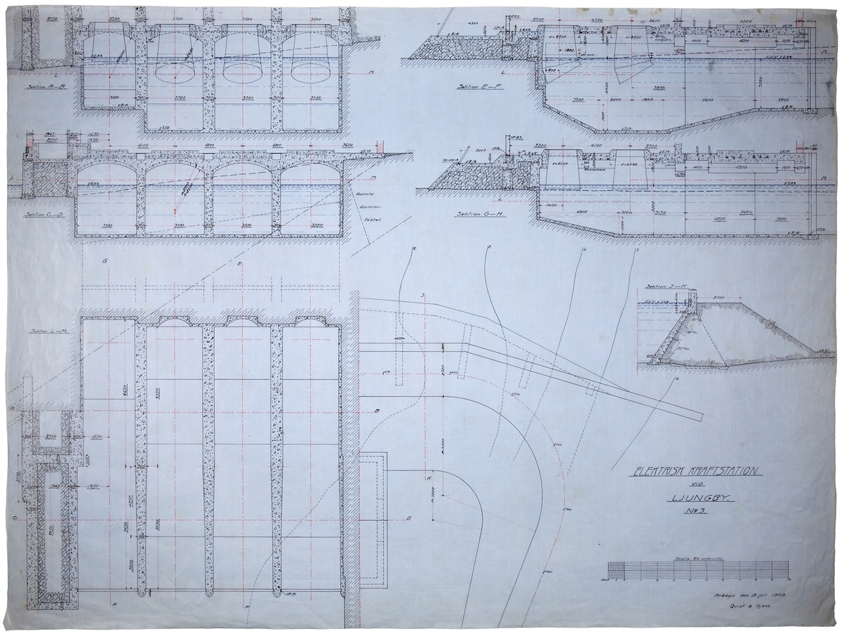 Ritning över Elektrisk kraftstation vid Ljungby. No 3. Skala: 20 mm = 1 m.