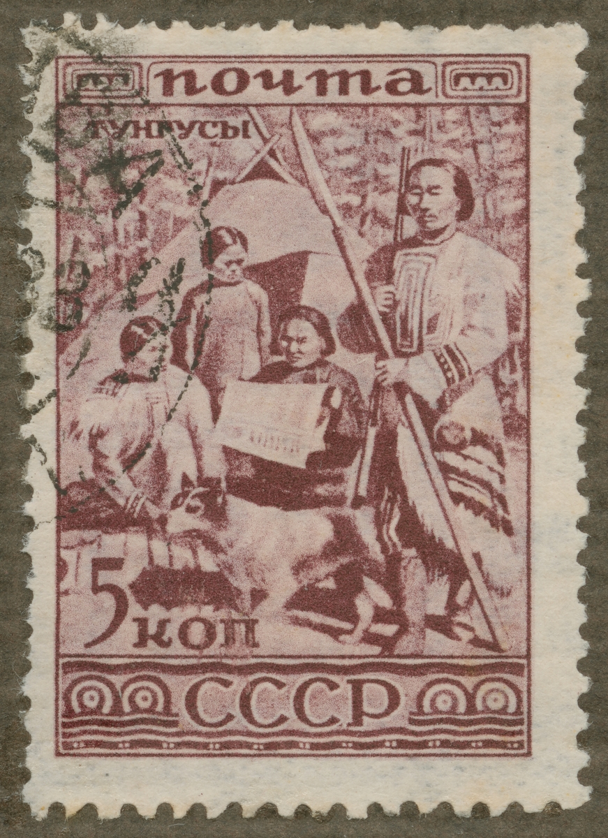 Frimärke från Ryssland, 1933. Motiv av bostadstält, Tunguser. "Serie: Folkslag i Sovjet."