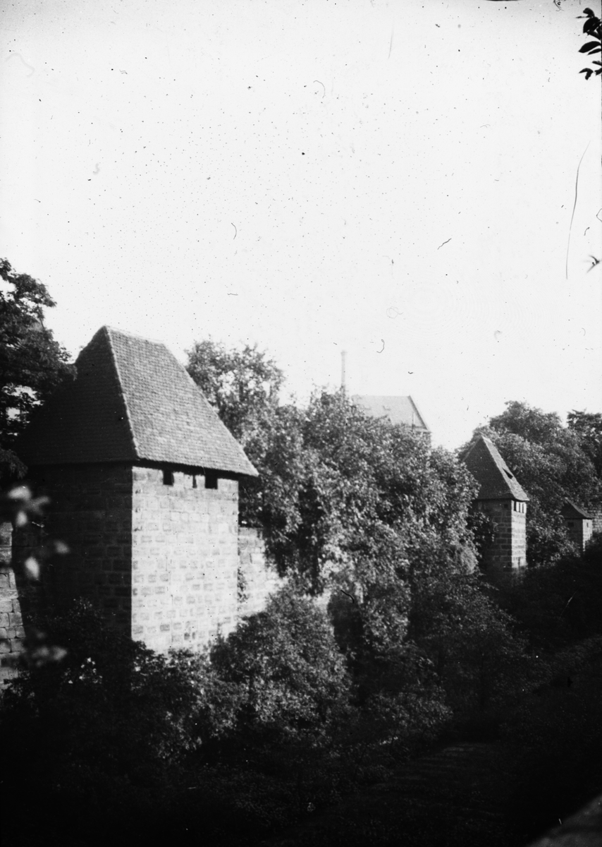 Skioptikonbild med motiv av stadsmuren Nürnberg.