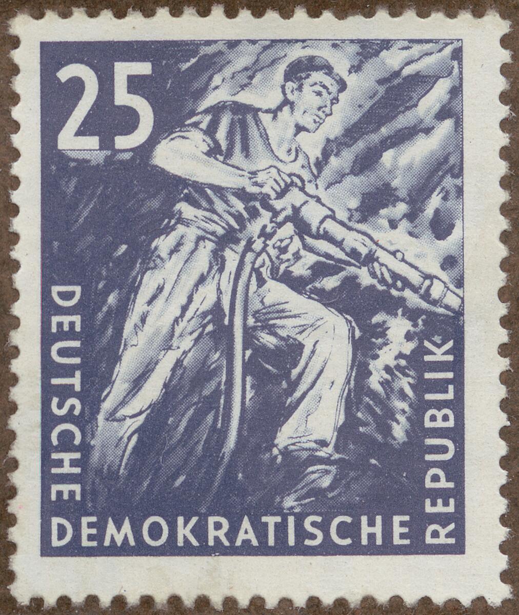 Frimärke från Östtyskland, 1957. Motiv av Borrare i Kolgruva "-Propaganda serie för gruvindustri-"