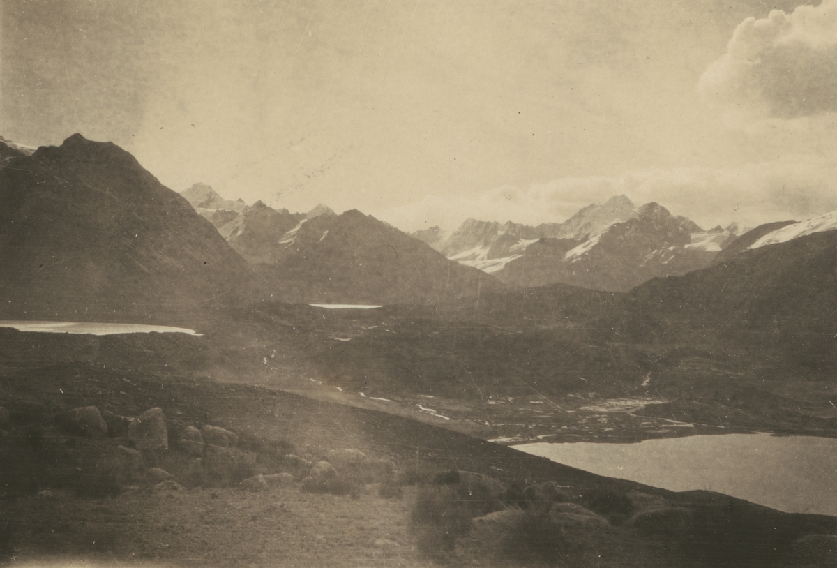 Fotografi från kuvert märkt med "Ernst Nordenskjöld". Vy över kargt och vidsträckt bergslandskap.