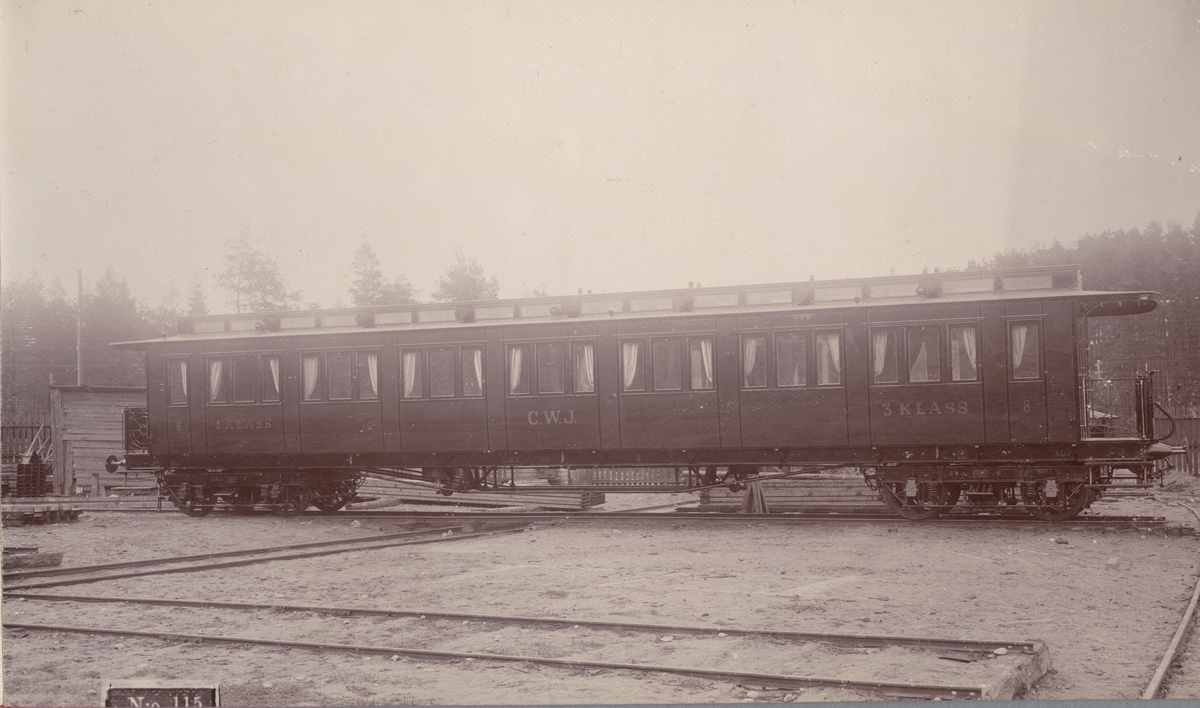 Tågvagn. 1:a och 3:e klass boggiepersonvagn. Vagnfabriks Aktiebolaget i Södertälge.