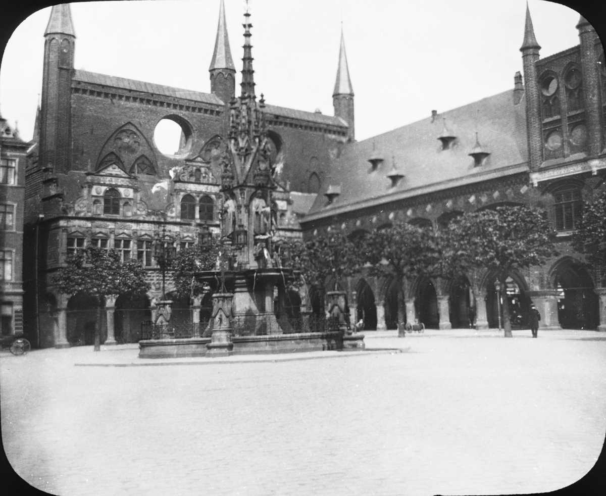 Skioptikonbild med motiv från Rådhuset i Lübeck.