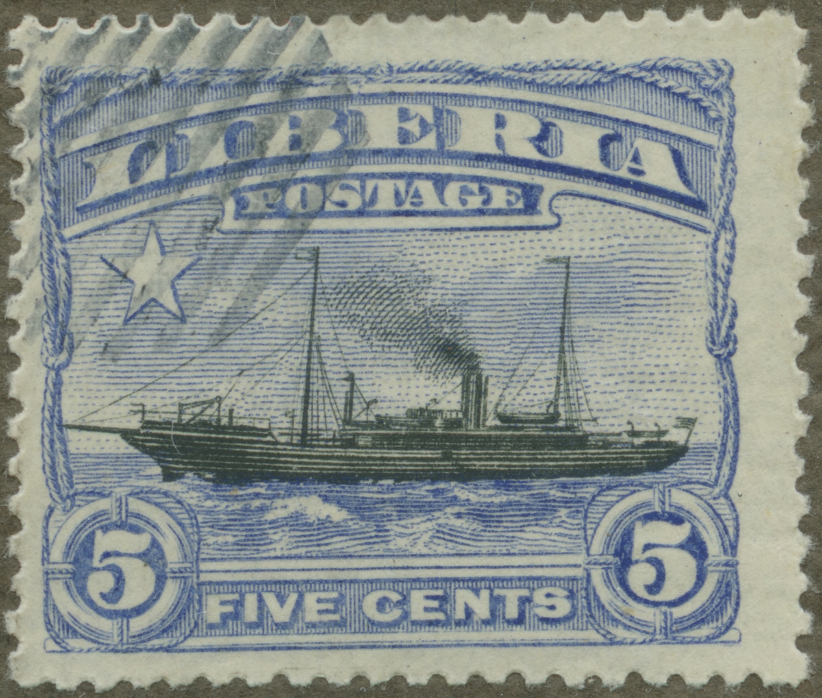 Frimärke från Liberia, 1909. Motiv av "S/S Pres. Daniel E. Howard" (f.d. armerade fartyget "Lark"