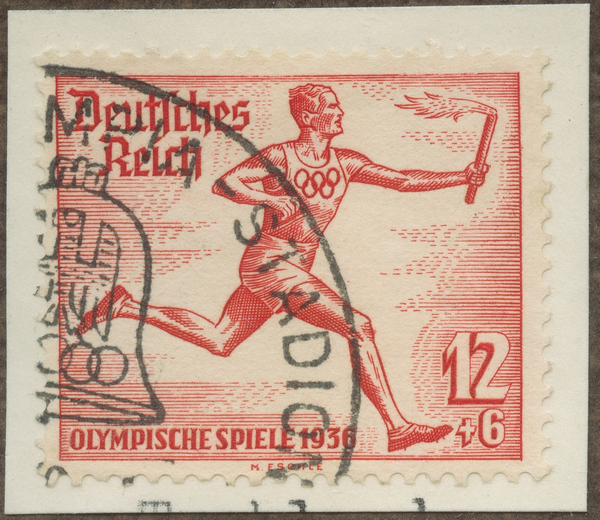 Frimärke från Tyskland, 1936. Motiv av Löpare med fackla 9:de Olympiaden i Berlin 1936