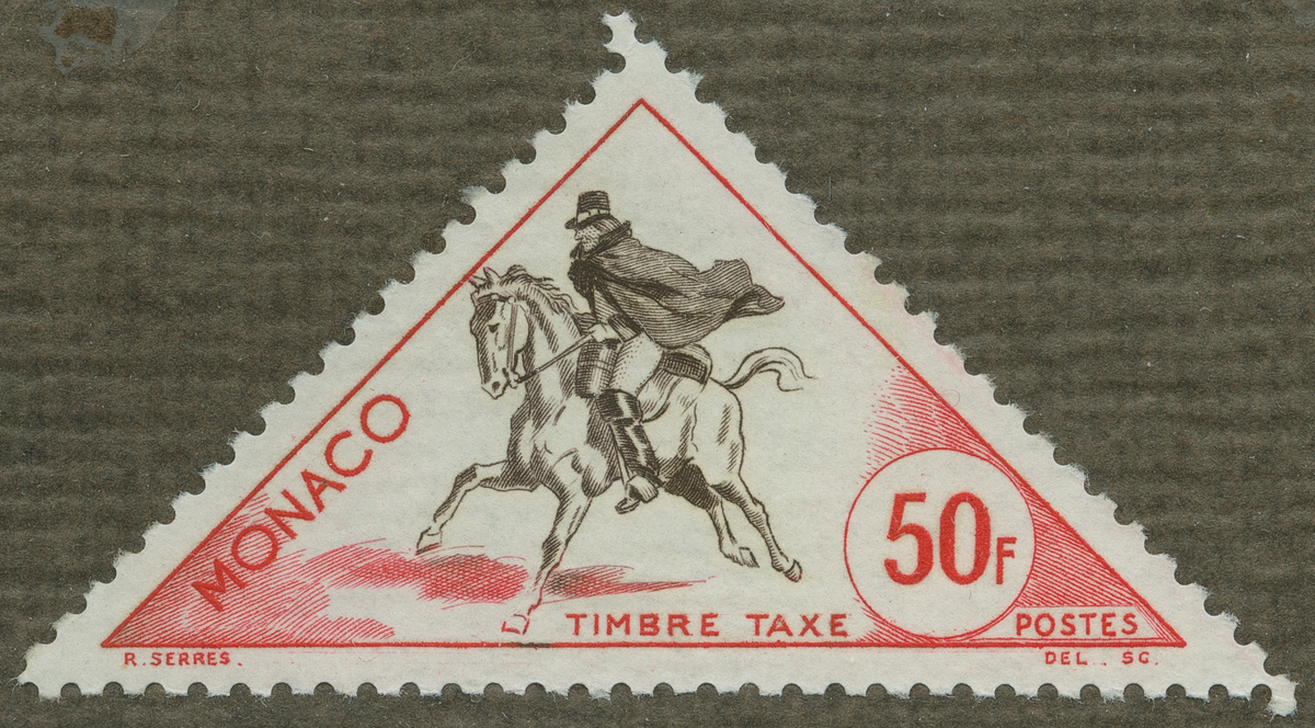 Frimärke från Monaco, 1953. Motiv av Kurirpost till Häst