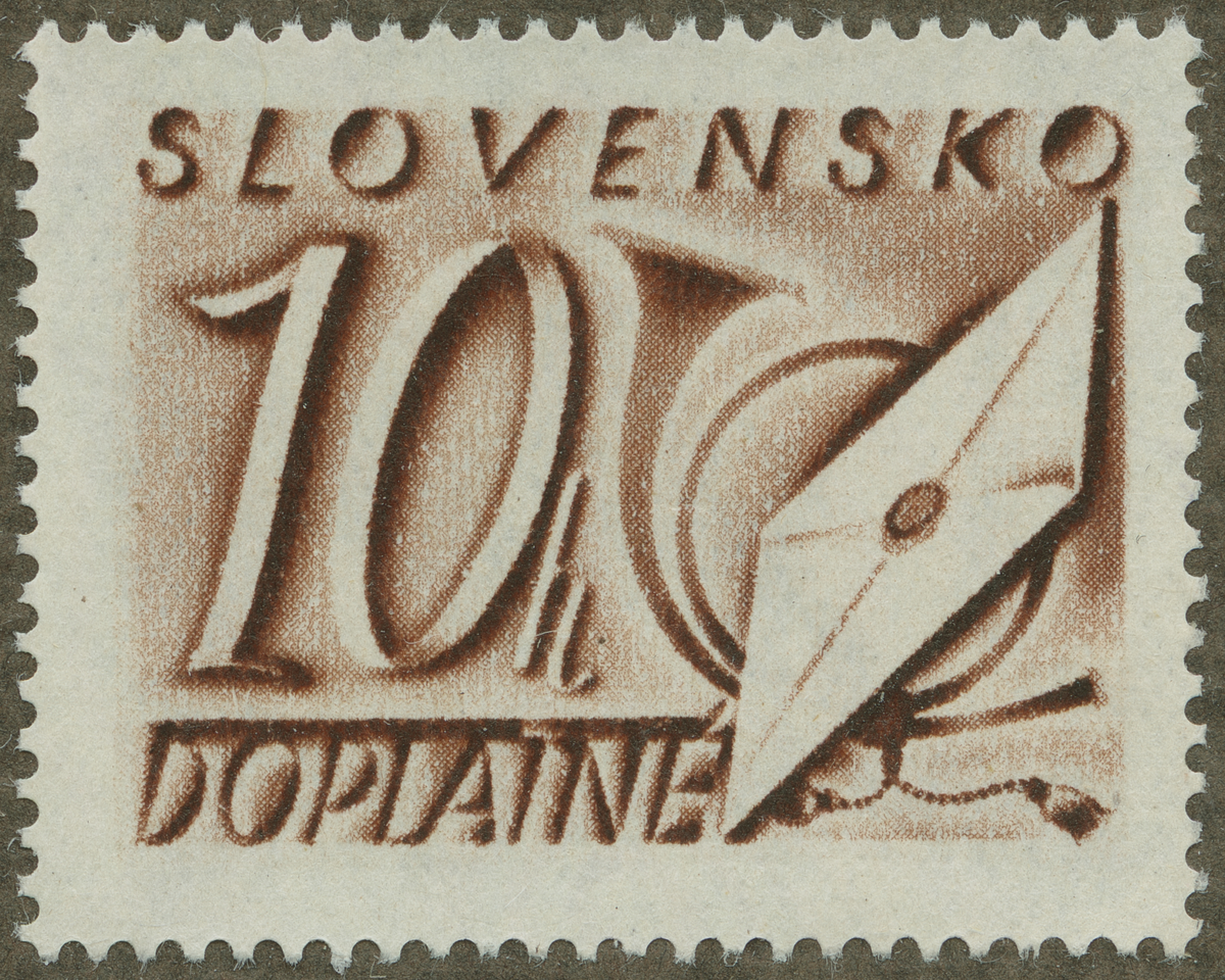 Frimärke från Slovakiet 1942. Motiv av Posthorn och brevkuvert Postsymboler -Lösen-