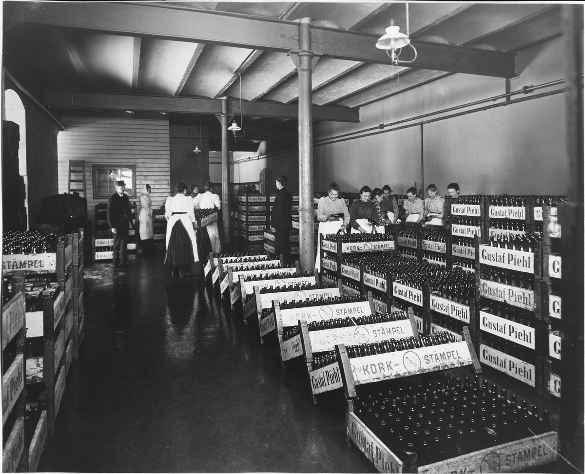Gustaf Piehls Nya Bryggeri. Interiör från packningsavdelning.