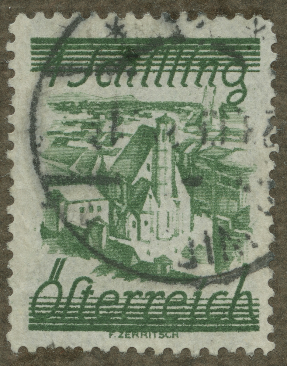 Frimärke från Österrike, 1925. Motiv av Minoritenkirche i Wien.
