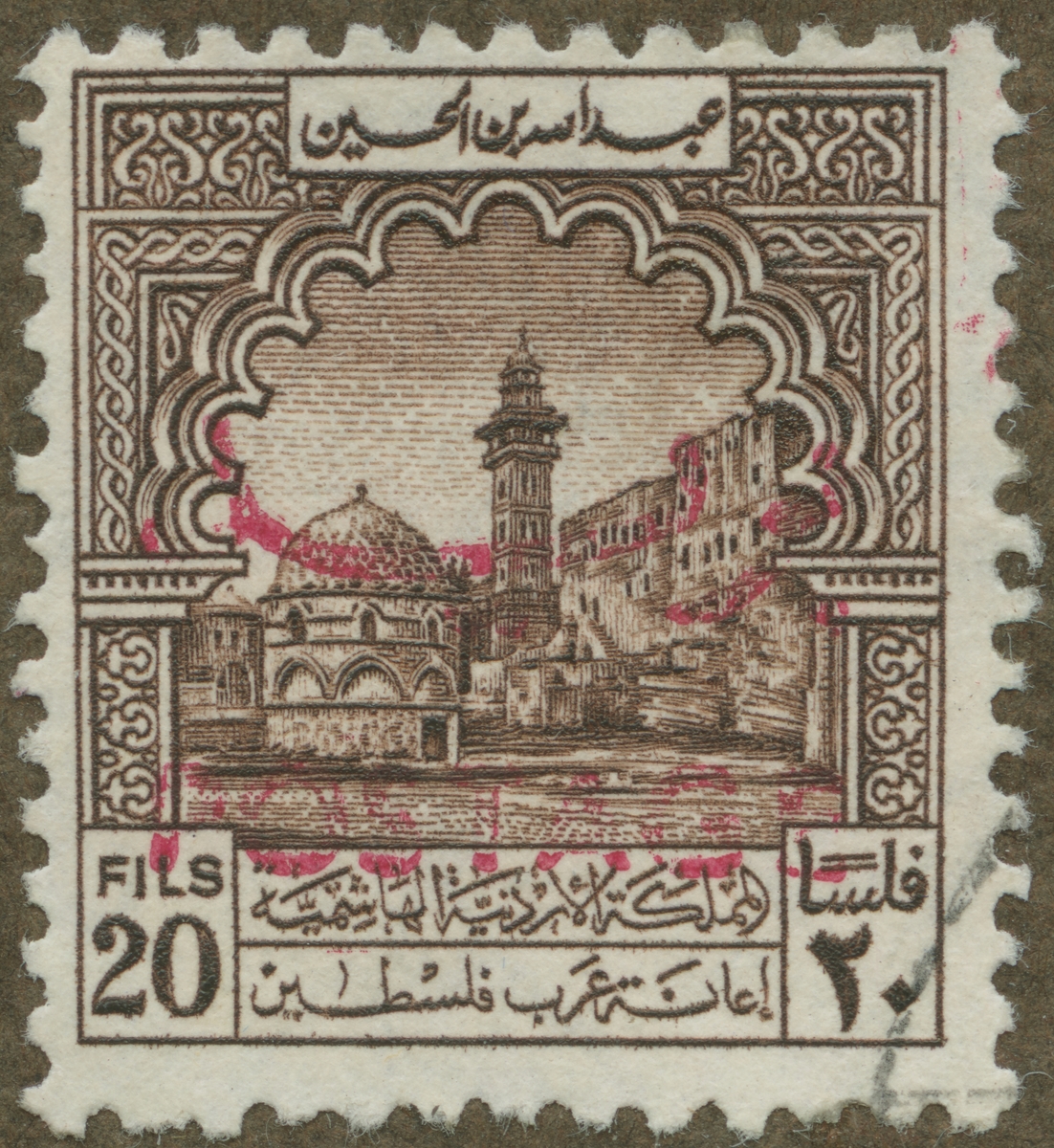 Frimärke från Jordanien 1947. Tempeldistriktet i Jerusalem.