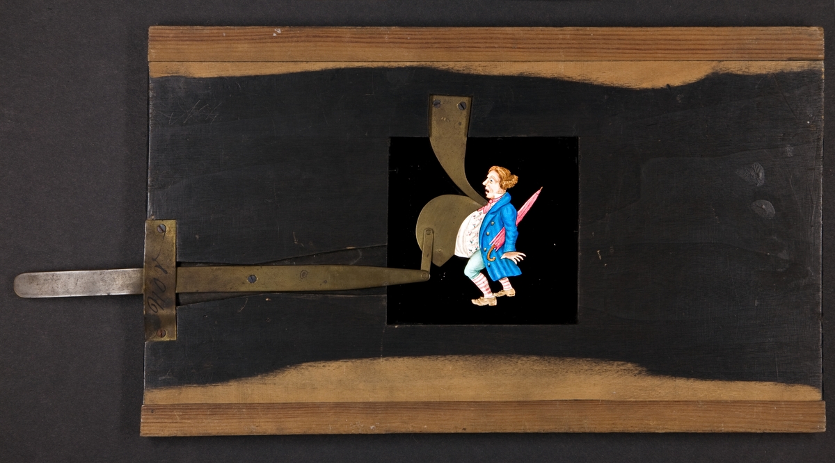 Laterna magica bild målad i färg på glasskiva.