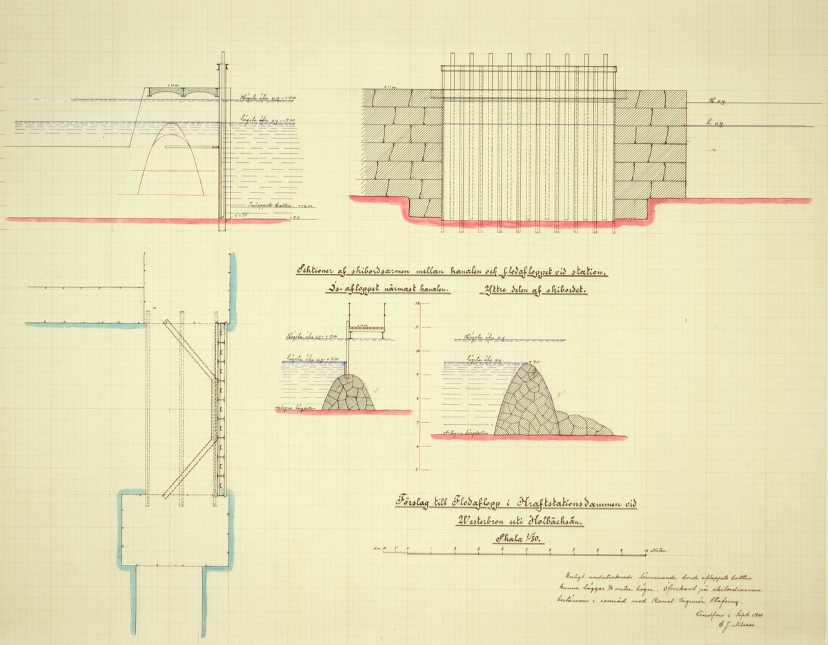 Förslag till flodavlopp i kraftstationsdammen vid Westerbron uti Kolbäcksån..