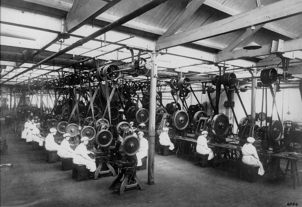 Pressarverkstad med personal, Beeston.