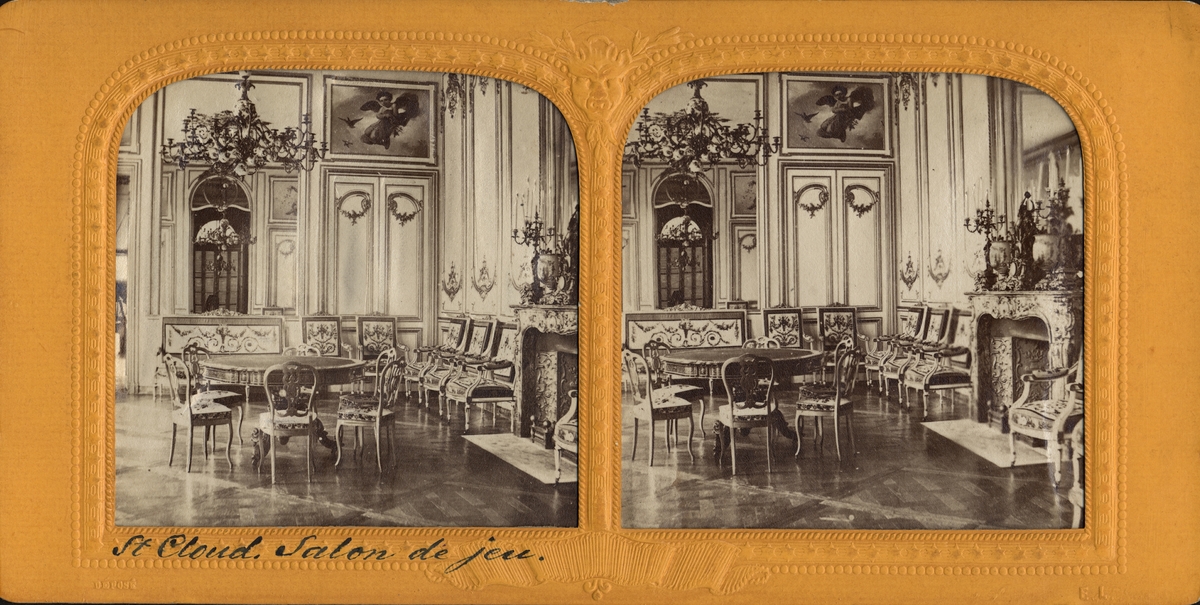 Stereobild av interiör, Salon de jeu, St. Cloud.