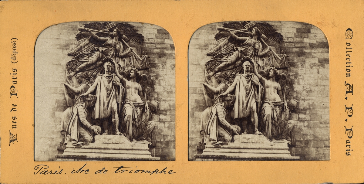 Stereobild, närbild av skulptur på Triumfbågen, Arc de Triomphe.