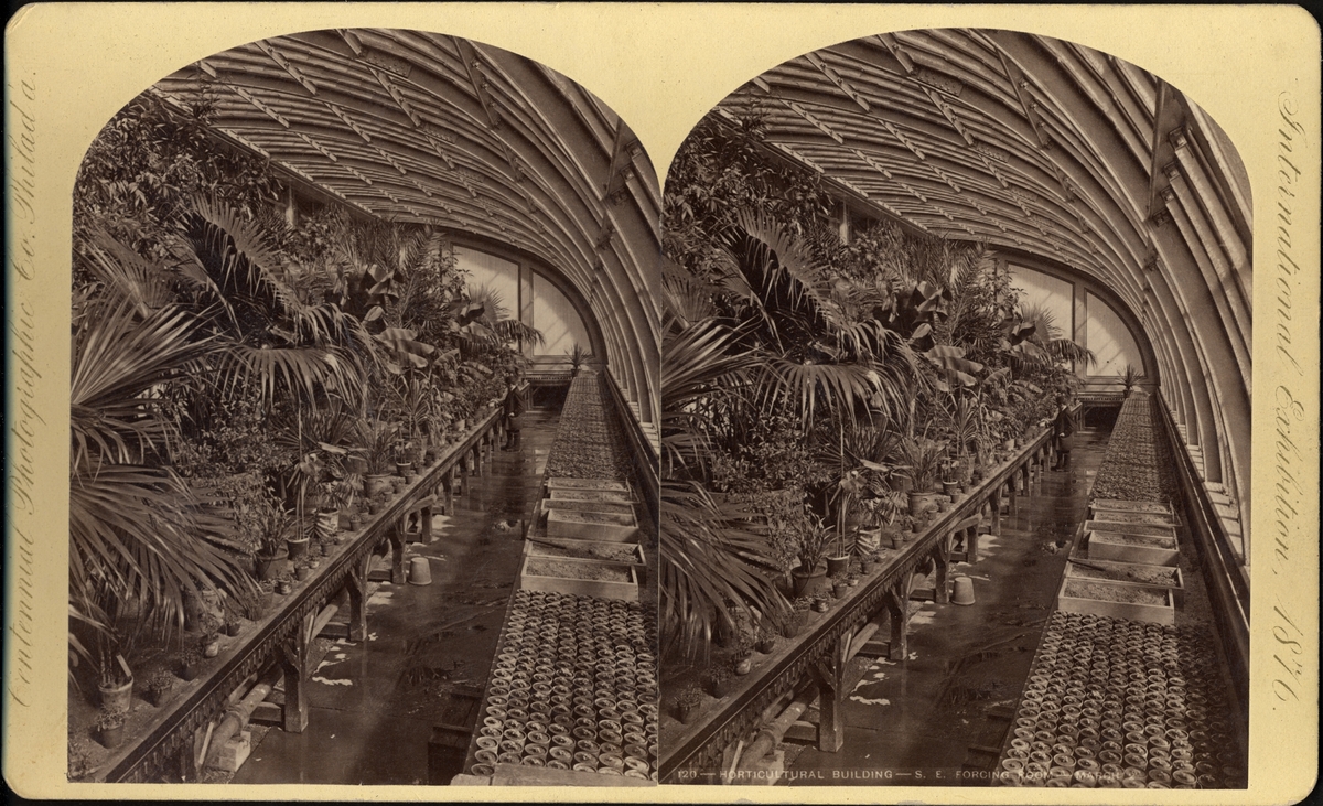 Stereobild, Horticultural Buildning, Centennial International Exhibition 1876.