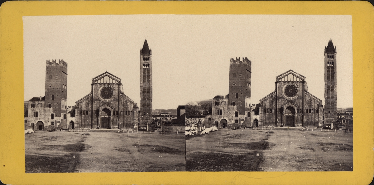 Stereobild av gammal kyrka, katedral. Basilica di San Zeno Maggiore i Verona, Italien.