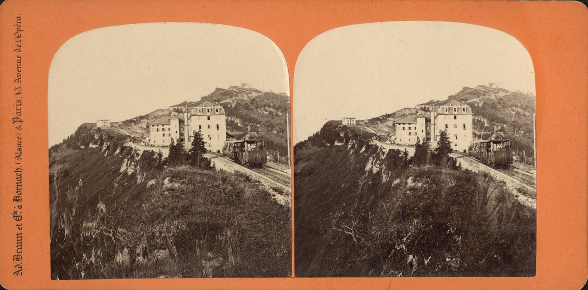 Stereobild av lokomotiv på bergsbana till Hôtel Rigi- Staffel.