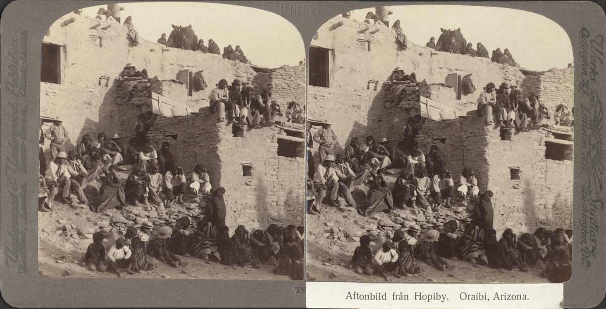 Stereobild, aftonblid från Hopiindianernas by, Oraibi, Arizona.