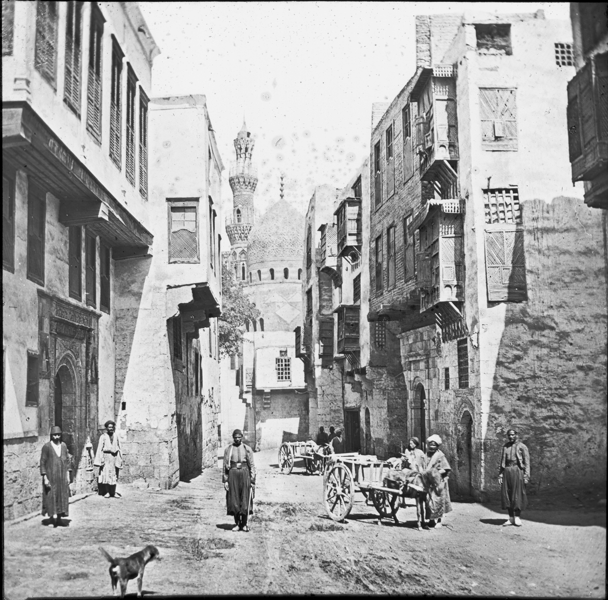 Ljusbild, fotografi av människor på gata/ gränd i Kairo.