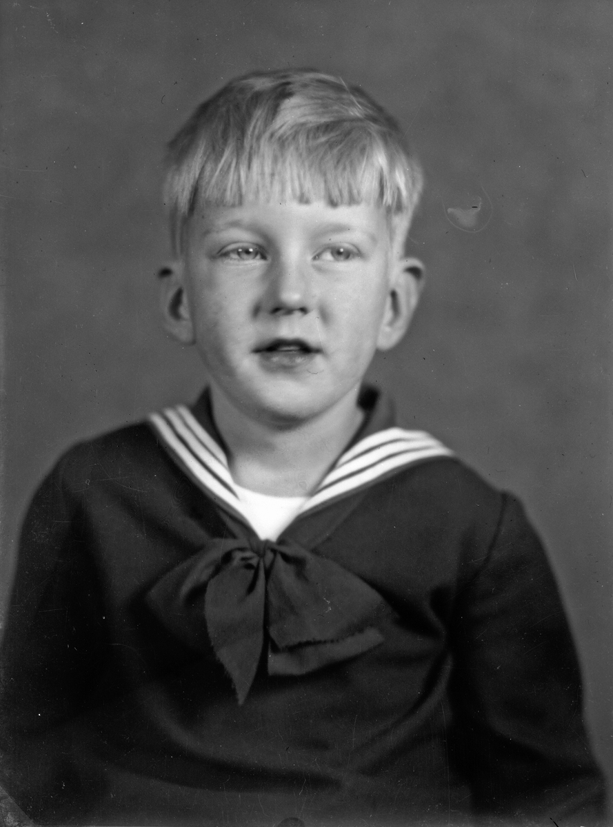 Glasnegativ, porträtt av ung pojke i sjömansskjorta.