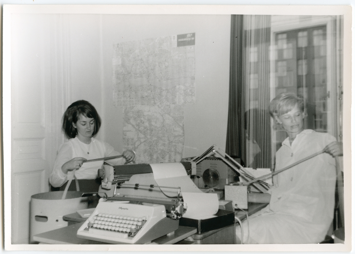 Titel: Fotografi donerat av Margareta Håkansson. Bilden från slutet på 60-talet på Vivestans där Margareta arbetade som hålkortsstanserska. Vivestans låg vid Fridhemsplan, på Drottningholmsvägen 24.