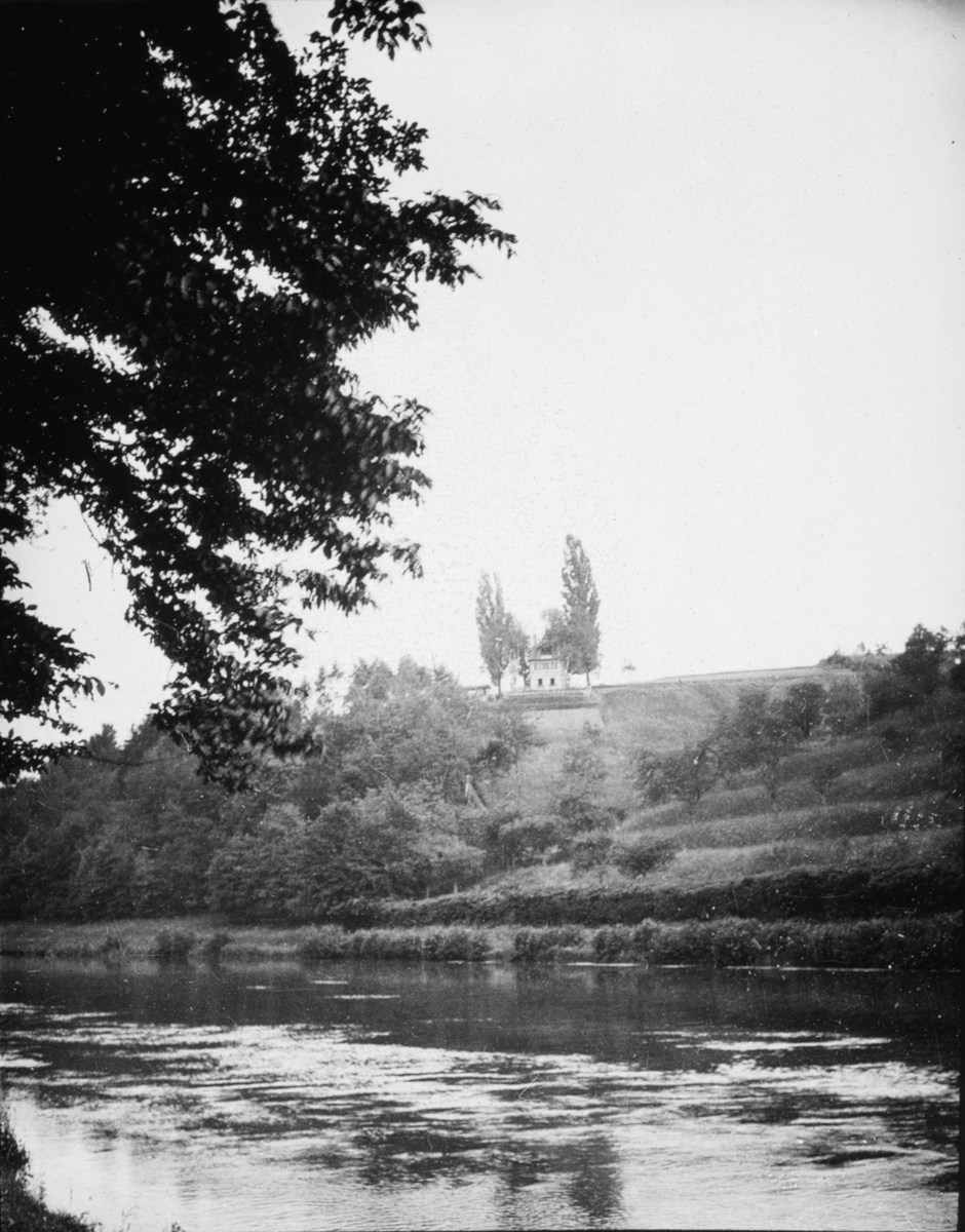 Skioptikonbild med motiv vid flod, Theresienhain, Bamberg.
