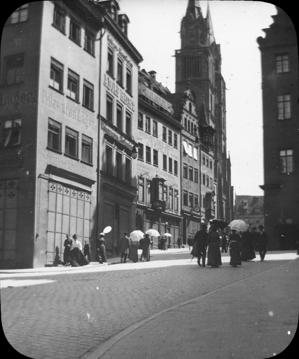 Skioptikonbild med motiv från gatan Köningstrasse i Nürnberg.