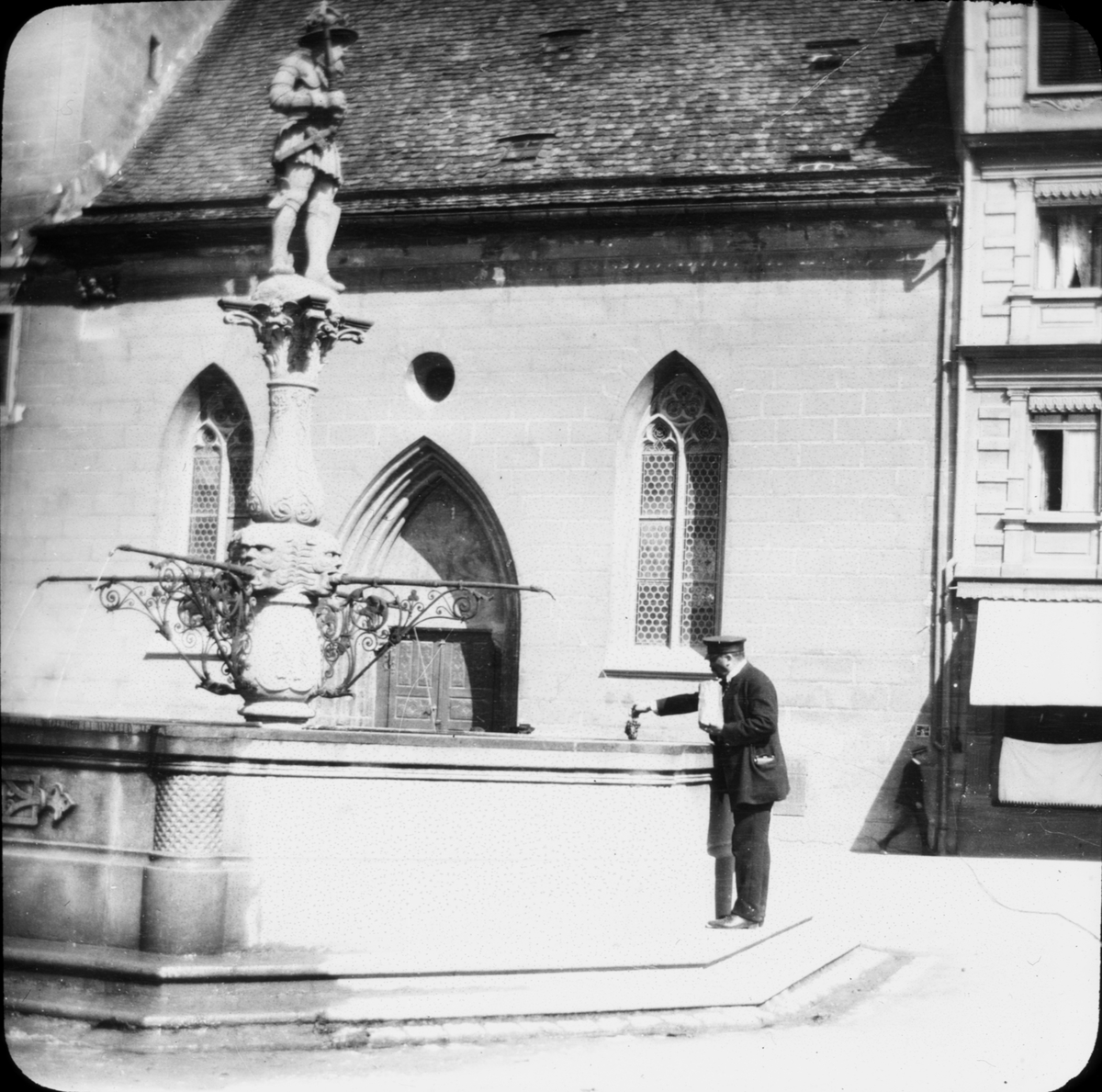 Skioptikonbild med motiv av fontän i Reutlingen.