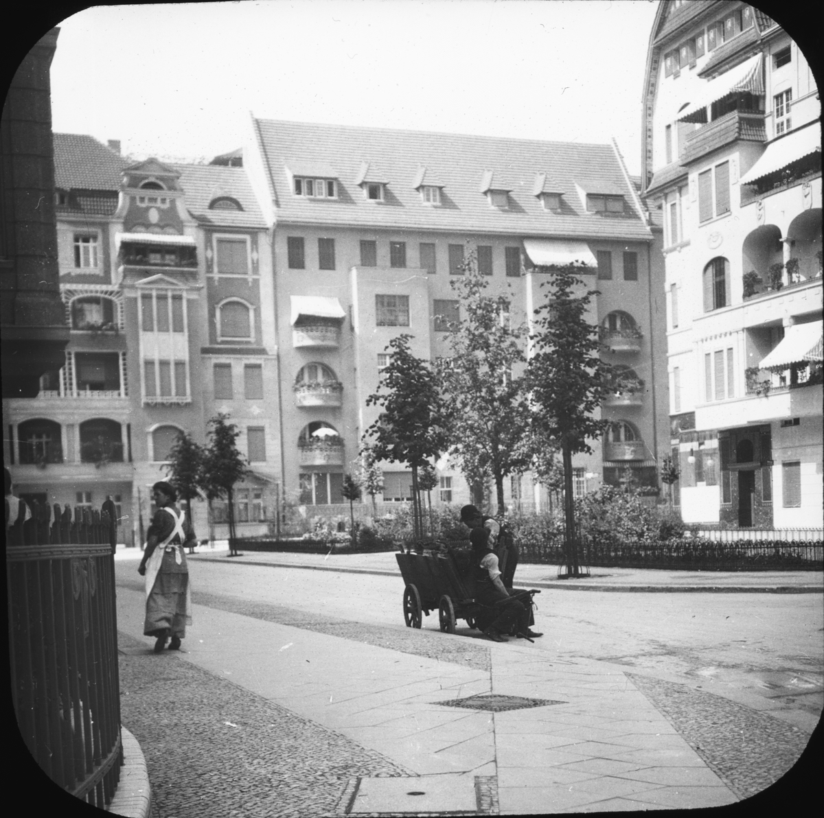 Skioptikonbild med motiv Berlin. Okänd gata.