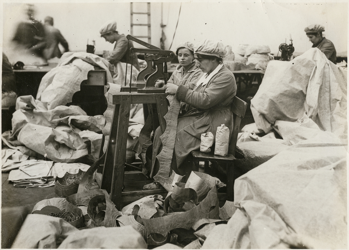 Kvinnor arbetar med det yttre höljet till flygmaskiner på flygplansfabrik.