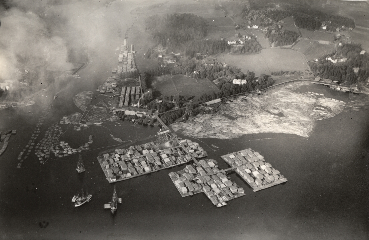 Flygfotografi över Björknäs Sågverk, Ångermanland.