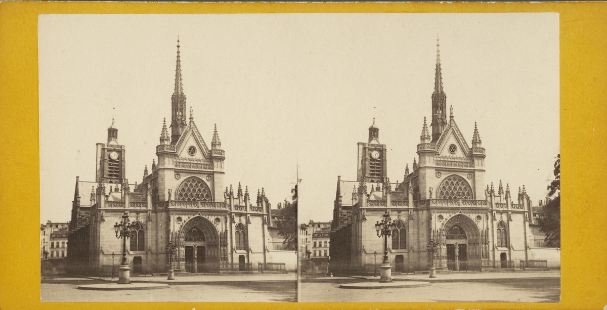 Stereobild med motiv av kyrkan Saint-Laurent (franska: Église Saint-Laurent)), Paris.