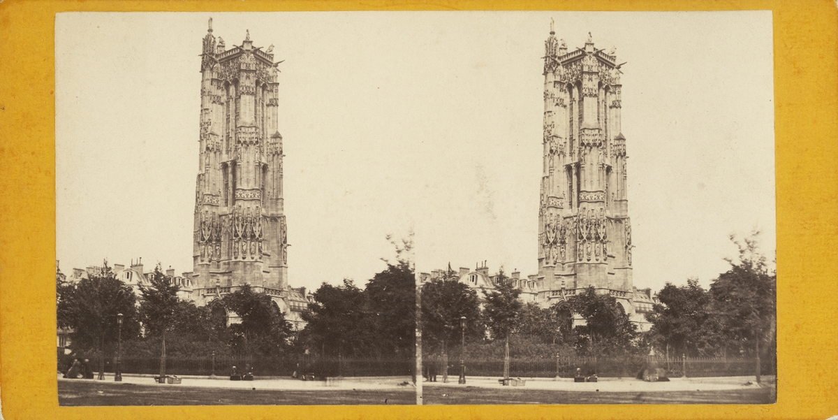 Stereobild med motiv av Saint-Jacques Tower i Paris.