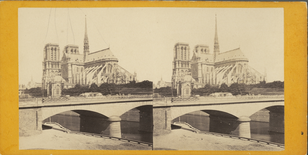 Stereobild med motiv av katedralen Notre-Dame i Paris.